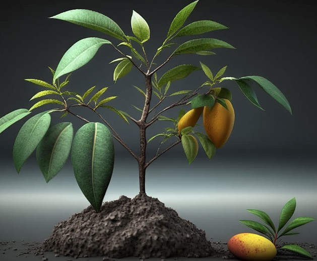 Örneğin, mango tohumu ekerseniz (eylem), tohumlardan elma değil, mango (eşit tepki) elde edersiniz (ters tepki). Burada, ekmek eylemdir, tepki ise tohumlardan gelir, yani mango (eşit) verir. İnsanların ve diğer canlıların dünyasında, tohum ekmek ile nihai meyveyi elde etmek arasında bir zaman aralığı vardır. Tohum ekme eylemi, meyvesi veya etkisi her zaman kaçınılmaz veya önlenemez olan bir nedenin ortaya konmasıdır.