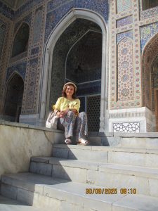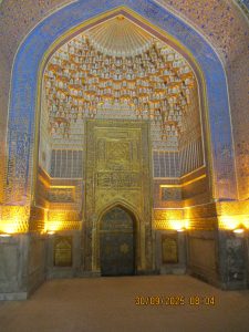 Semerkant gezisine gösterişli kapısı ve kubbesiyle Gur Amir olarak adlandırılan ve aynı zamanda bir aile kabristanı olarak kullanılan Timur’un Türbe’si ile başlama. Türbede ayrıca Timur’un oğulları Miran Şah ve Şahruh ile birlikte diğeri iki torunu Pir Muhammed Mirza ve Uluğ Bey, hocası Aziz Nur Seyyid Bereke gömülüdür. Daha sonra, Uluğ Bey tarafından kurulmuş ve bizzat kendisinin burada matematik ve astronomi dersleri verdiği yıldızlarla bezeli Uluğ Bey Medresesi, aslan ve ceylan figürleri ile süslenmiş Şir Dor Medresesi ve altın süslemeli Tellakari Medresesi ile çevrili Semerkand’ın Kalbi Registan Meydanı gezisi. Timur’un eşi Bibi Hanımı için yaptırdığı, çinileriyle ve Kufi yazılarla süslü Bibi Hatun Camii ile geziye devam. Her türlü ürünün bulunduğu, İpek Yolu’nun en büyük pazarlarından olan meşhur Siyab Pazarı gezildi. Semerkant şehrinin bilinen ilk yerleşimi Efrasiyab höyüğü 1220’li yıllardaki Moğol İstilası sırasında tahrip edilerek terk edilmiş. Fakat tepede bulunan Şah-ı Zinde Türbesi nedeniyle önemini hiçbir zaman yitirmemiş. 676 yılında Maveraün nehir’de Müslümanlığın yayılmasına çalıştığı sırada öldüğü rivayet edilen Hz.Muhammed’in yeğeni Kasım b. Abbas’ın mezarının etrafında daha sonraki dönemlerde yapılan türbelerle oluşan bu yapılar topluluğu, Kasım bin Abbas’ın şehit olmasına izafeten Şah-ı Zinde (Yaşayan Şah) olarak isimlendirilmiş. Müslümanlar, Hristiyanlar ve Yahudiler tarafından ziyaret edilen ender yerlerden biri olan 18 metre uzunluğundaki Hz.Danyal’ın kabrini ziyaret. Bir rivayete göre, Timurlenk, XIV. Yüzyılda İran ve Irak bölgesi fethe gittiğinde, İran-Irak sınırındaki Sus şehrinde yer alana Hz.Danyal’ın kabrini toprağıyla beraber buraya getirmiş, başka bir rivayet ise kabrinden sadece toprağın getirildiğinden bahseder. Daha sonra, antik kentin tarihine ışık tutan Efrasiyab Arkeoloji Müzesi gezisi. Özbek milli kıyafetleri millet kültürünün ayrılmaz bir parçası.