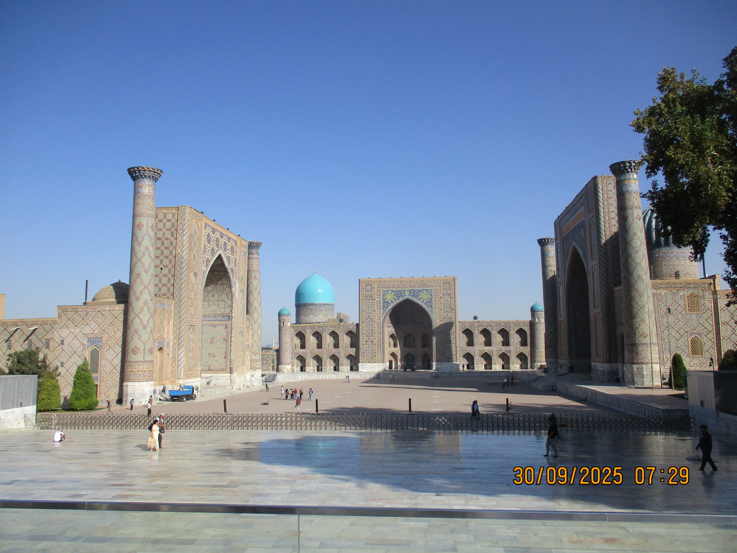 Semerkant gezisine gösterişli kapısı ve kubbesiyle Gur Amir olarak adlandırılan ve aynı zamanda bir aile kabristanı olarak kullanılan Timur’un Türbe’si ile başlama. Türbede ayrıca Timur’un oğulları Miran Şah ve Şahruh ile birlikte diğeri iki torunu Pir Muhammed Mirza ve Uluğ Bey, hocası Aziz Nur Seyyid Bereke gömülüdür. Daha sonra, Uluğ Bey tarafından kurulmuş ve bizzat kendisinin burada matematik ve astronomi dersleri verdiği yıldızlarla bezeli Uluğ Bey Medresesi, aslan ve ceylan figürleri ile süslenmiş Şir Dor Medresesi ve altın süslemeli Tellakari Medresesi ile çevrili Semerkand’ın Kalbi Registan Meydanı gezisi. Timur’un eşi Bibi Hanımı için yaptırdığı, çinileriyle ve Kufi yazılarla süslü Bibi Hatun Camii ile geziye devam. Her türlü ürünün bulunduğu, İpek Yolu’nun en büyük pazarlarından olan meşhur Siyab Pazarı gezildi. Semerkant şehrinin bilinen ilk yerleşimi Efrasiyab höyüğü 1220’li yıllardaki Moğol İstilası sırasında tahrip edilerek terk edilmiş. Fakat tepede bulunan Şah-ı Zinde Türbesi nedeniyle önemini hiçbir zaman yitirmemiş. 676 yılında Maveraün nehir’de Müslümanlığın yayılmasına çalıştığı sırada öldüğü rivayet edilen Hz.Muhammed’in yeğeni Kasım b. Abbas’ın mezarının etrafında daha sonraki dönemlerde yapılan türbelerle oluşan bu yapılar topluluğu, Kasım bin Abbas’ın şehit olmasına izafeten Şah-ı Zinde (Yaşayan Şah) olarak isimlendirilmiş. Müslümanlar, Hristiyanlar ve Yahudiler tarafından ziyaret edilen ender yerlerden biri olan 18 metre uzunluğundaki Hz.Danyal’ın kabrini ziyaret. Bir rivayete göre, Timurlenk, XIV. Yüzyılda İran ve Irak bölgesi fethe gittiğinde, İran-Irak sınırındaki Sus şehrinde yer alana Hz.Danyal’ın kabrini toprağıyla beraber buraya getirmiş, başka bir rivayet ise kabrinden sadece toprağın getirildiğinden bahseder. Daha sonra, antik kentin tarihine ışık tutan Efrasiyab Arkeoloji Müzesi gezisi. Özbek milli kıyafetleri millet kültürünün ayrılmaz bir parçası.