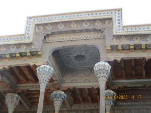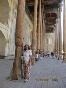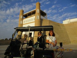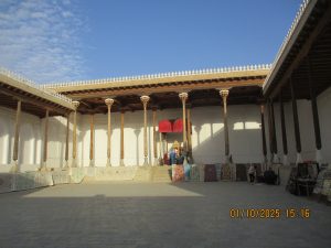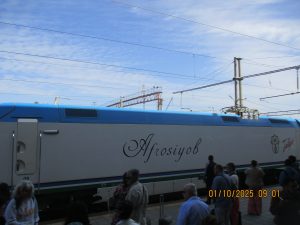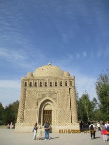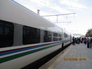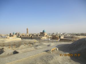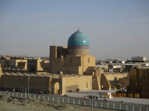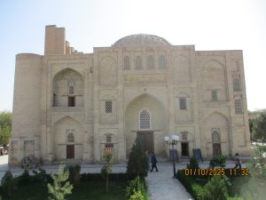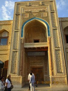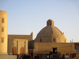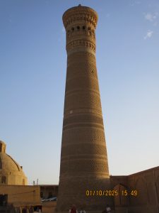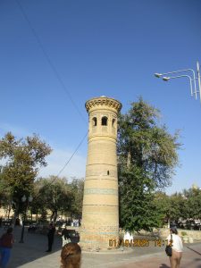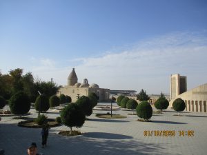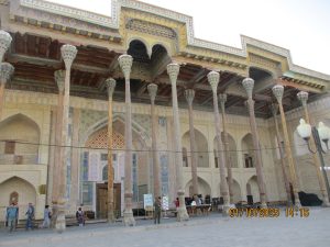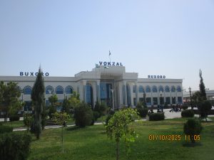 Kahvaltının ardından, tren istasyonuna geldik ve Afrosiyab hızlı treni ile 2 saatlik bir yolculuktan sonra Kagan istasyonuna vardık. Buhara tren istasyonu’nun tarihi, Orta Asya’da Trans-Hazar demiryolunun inşa edildiği XIX. Yüzyılın başlarına kadar uzanıyor. 1888 yılında demiryolu Buhara’nın yakınlarındaki bugünkü Kagan denilen yerden geçiyordu. 19202li yıllarda Buhara Demiryolları, eski Buhara Emirliği’nden devrim ve Sovyet iktidarının kurulması sırasında önemli bir rol oynadı. Rusya imparatorluğu yeni toprakları modern ticaret yollarıyla imparatorluğun merkezine daha hızlı bağlamaya çalıştığından, en mükemmel çözüm demiryollarının inşasıydı. 1922 yılında Kagan’daki tren istasyonunun adı Buhara I olarak değiştirildi ve Buhara şehrindeki terminal istasyonunda Buhara II olarak adlandırıldı. Buhara II istasyonu yalnızca yük taşımacılığı için kullanılmaktadır. Kagan’da İpek yolu güney güzergahı üzerinde bulunan, uçsuz bucaksız Kızılkum Çölü’nün zorlu koşullarını geçen kervanların umutla beklediği, çölün güney ucundaki Zerefşan ırmağının aşağı havzasındaki yemyeşil büyük vaha ve kutsal şehri Buhara’ya geldik. Orta Asya’nın en eski şehirlerinden biri olan Buhara, göz kamaştırıcı cami, medrese ve türbeleriyle, bölgenin geçmişine büyüleyici bir pencere açıyor. Orta Asya’daki pişmiş tuğladan yapılmış ilk mimari yapı İsmail Samani Türbesi; Harezm mimarisinin izlerini taşıyan XIV. yüzyıl sonundan kalma Çeşme-i Eyyüb Türbesi; benzersiz süslemeleriyle Bolo Havuz Camii; 1920 yılına kadar Buhara Hükümdarların ikamet ettikleri saray Ark Kalesi (İç Kale); Buhara’nın ruhani atmosferinin en fazla hissedildiği yer Poyi Kalo Meydanındır.